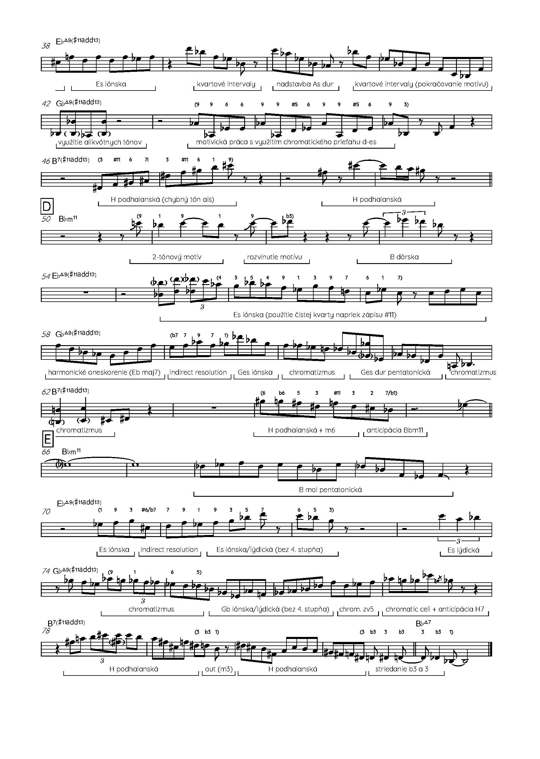 a Gbmaj9 #11 13 využíva lýdický modus a na B7 #11 13 používa najmä podhalanskú stupnicu čiže mixolýdický modus so zvýšenou kvartou. Ďalšie improvizačné prostriedky, ktoré tu nájdeme, sú pentatonické stupnice, chromatizmy, nadstavbové kvintakordy a nepriame rozvedenia. Svoje sólo rozbieha striedmejšie a jeho