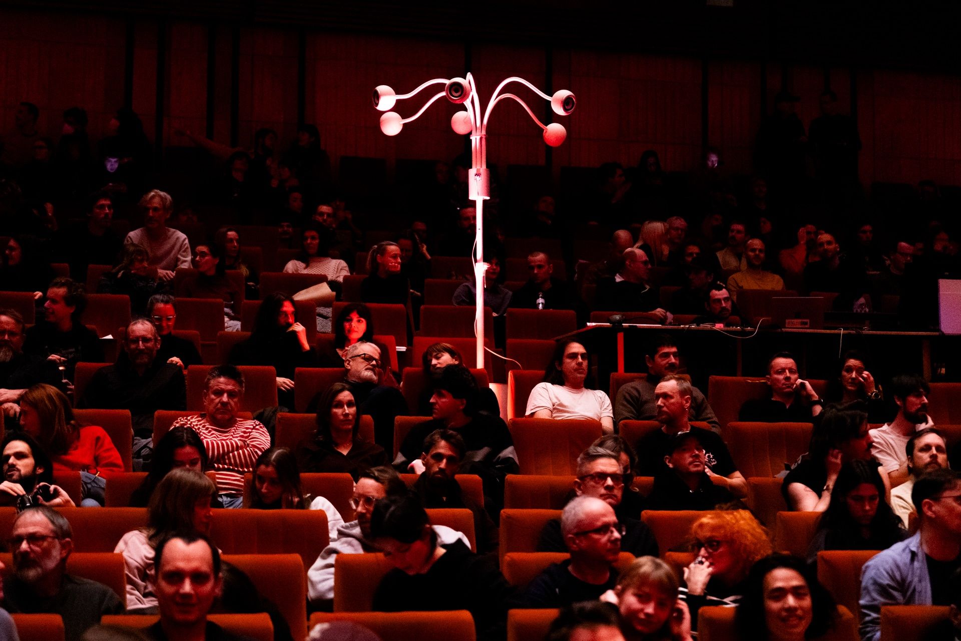 Ešte naliehavejšie sa hlásila pri vystúpení Drewa McDowalla, výraznej postavy umeleckého undergroundu Glasgowa. Jeho set bez názvu podľa mňa nepotreboval luxus Acousmonia; je možné, že pre mňa osobne jeho zaujímavosť znižovalo využívanie v podstate konvenčnej harmónie, dobre uplatniteľnej v hudbe pre klubovú scénu, no hlavne to, že som v ňom nedokázal objaviť takmer nič, čo by ma vtiahlo do imerzívneho zmyslového zážitku na hranici zmeneného stavu vedomia. A dovolím si predpokladať, že podobne nenaplnené ostali očakávania väčšej časti publika.